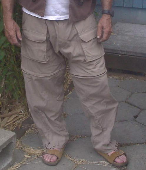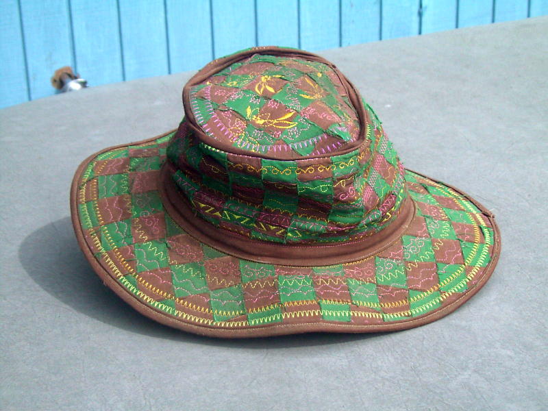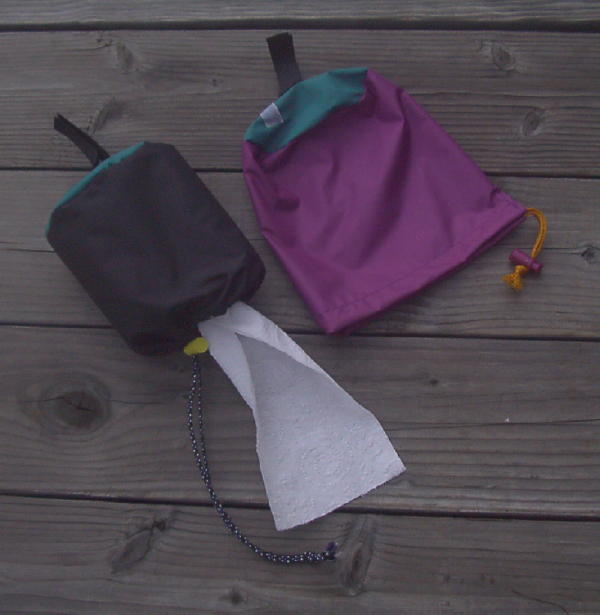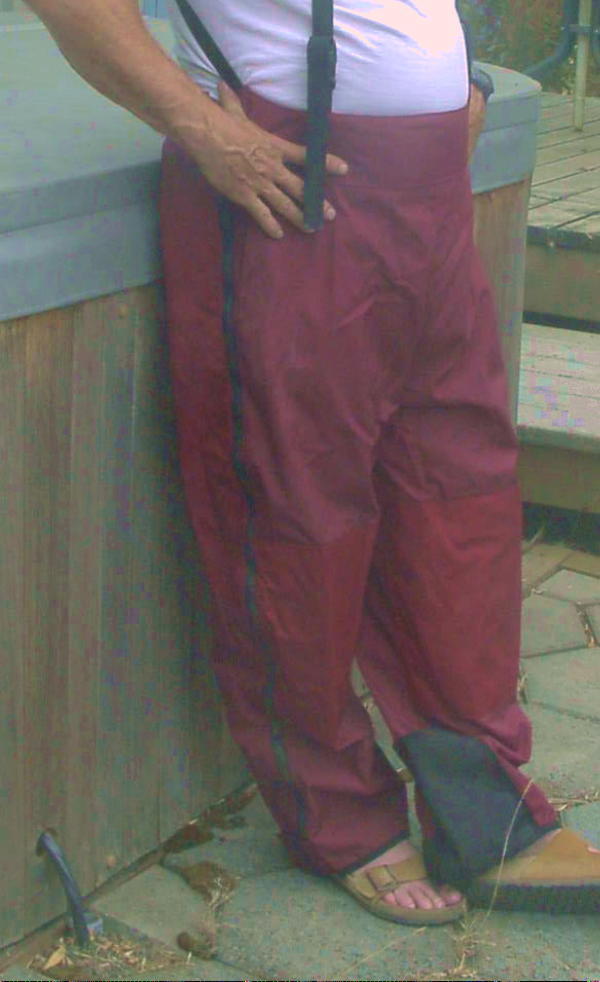 The toilet paper holder i make. Made from coated ripstop nylon its water repellent. Here is one of my first vests. These are the pants I made as a result of combining the patterns of two others that I had made. They are convertible(zippered legs) This is one of the pants those were patterned from.The pants I made for ATV riding in the winter. Net lined, fully water proof. The coat I made for sitting around the campfire. All fleece. This is my first attempt at this type of hat. Strips of rayon sewn onto purple and red netting. This hat and cape is made from Oil Skin.